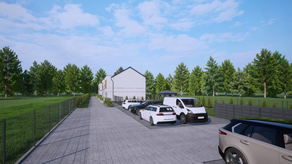 Dla wygody i bezpieczeństwa mieszkańców osiedle wyposażone zostanie w szlaban wjazdowy, co zapewnia kontrolę dostępu oraz monitoring.